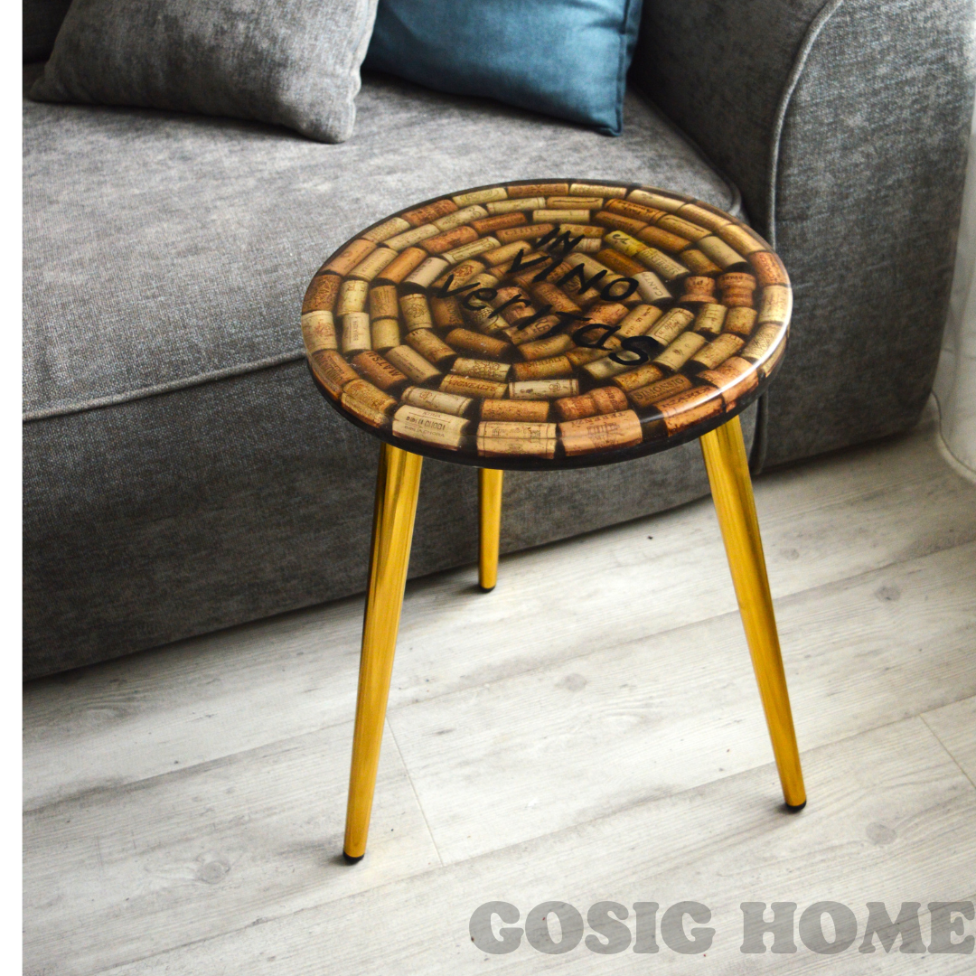 Истина - в вине, здоровье - в воде, сила - в правде и столиках от Gosig Home. Уникальный предмет интерьера - этот необычный столик из винных пробок и эпоксидной смолы. Высота 49 см, диаметр 35 см.