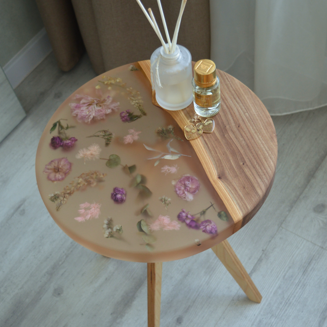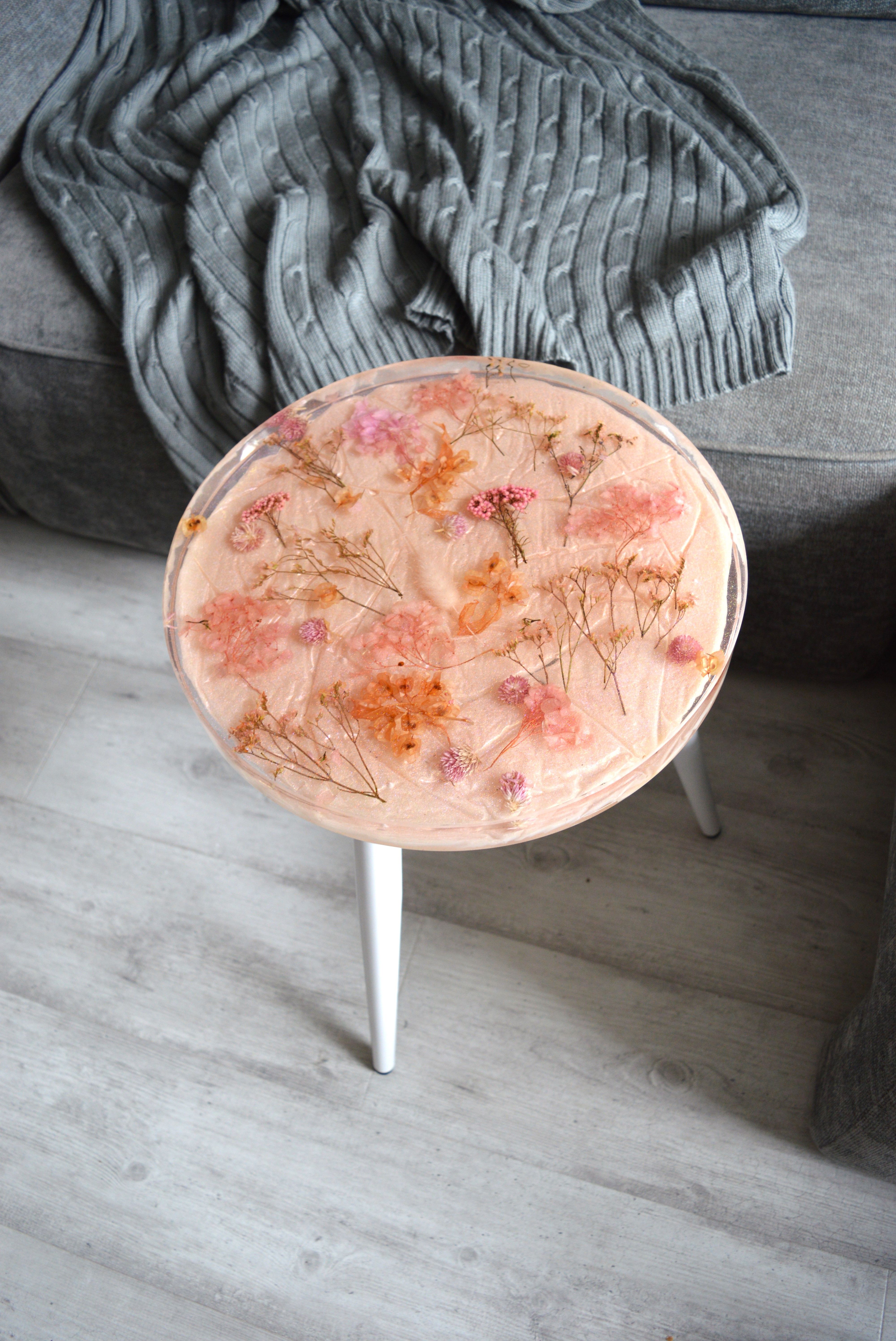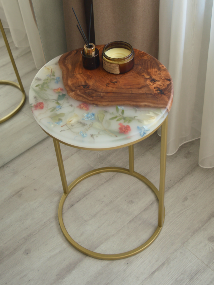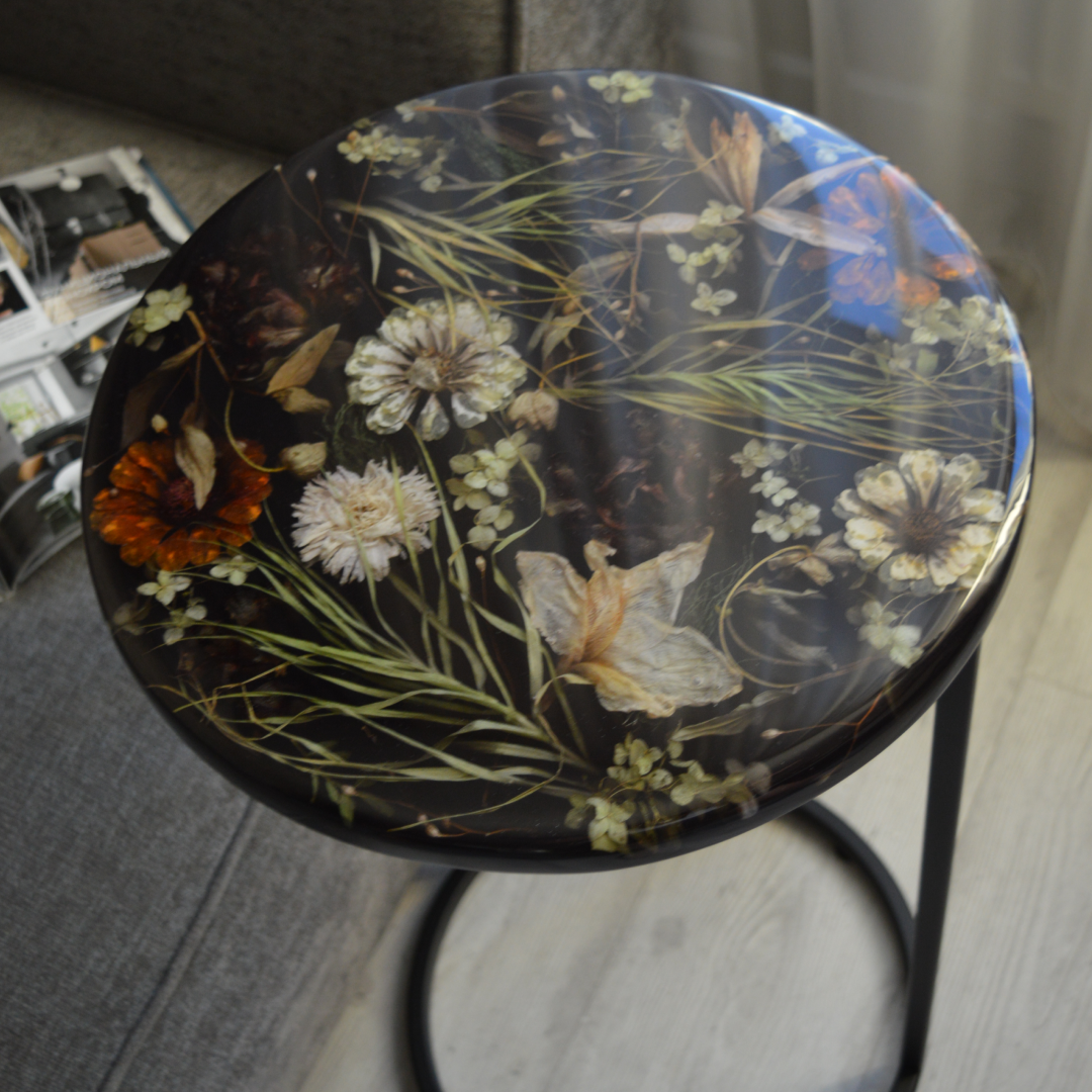 Столик из смолы с цветами
