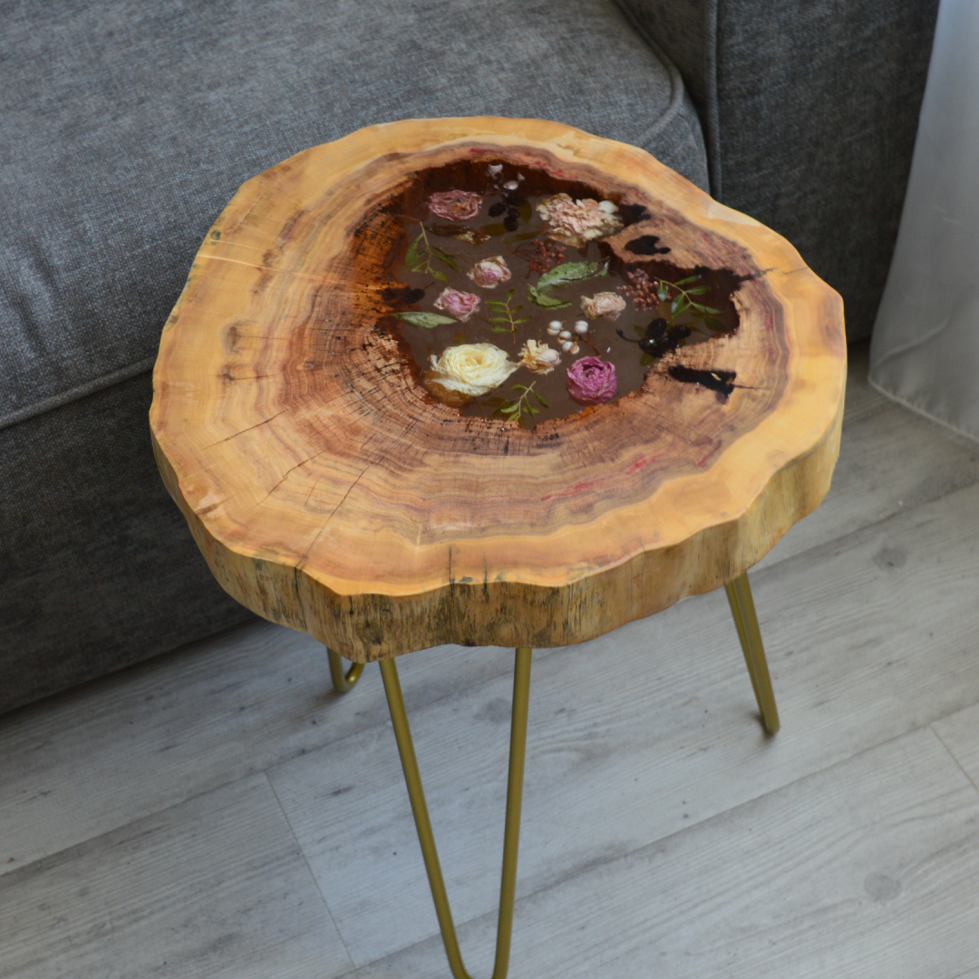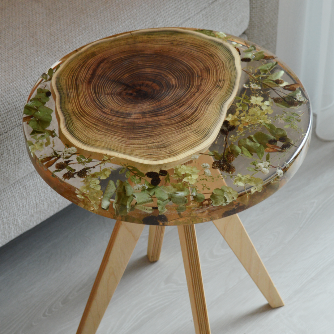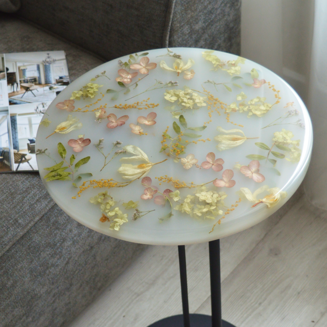 Столик из смолы с цветами