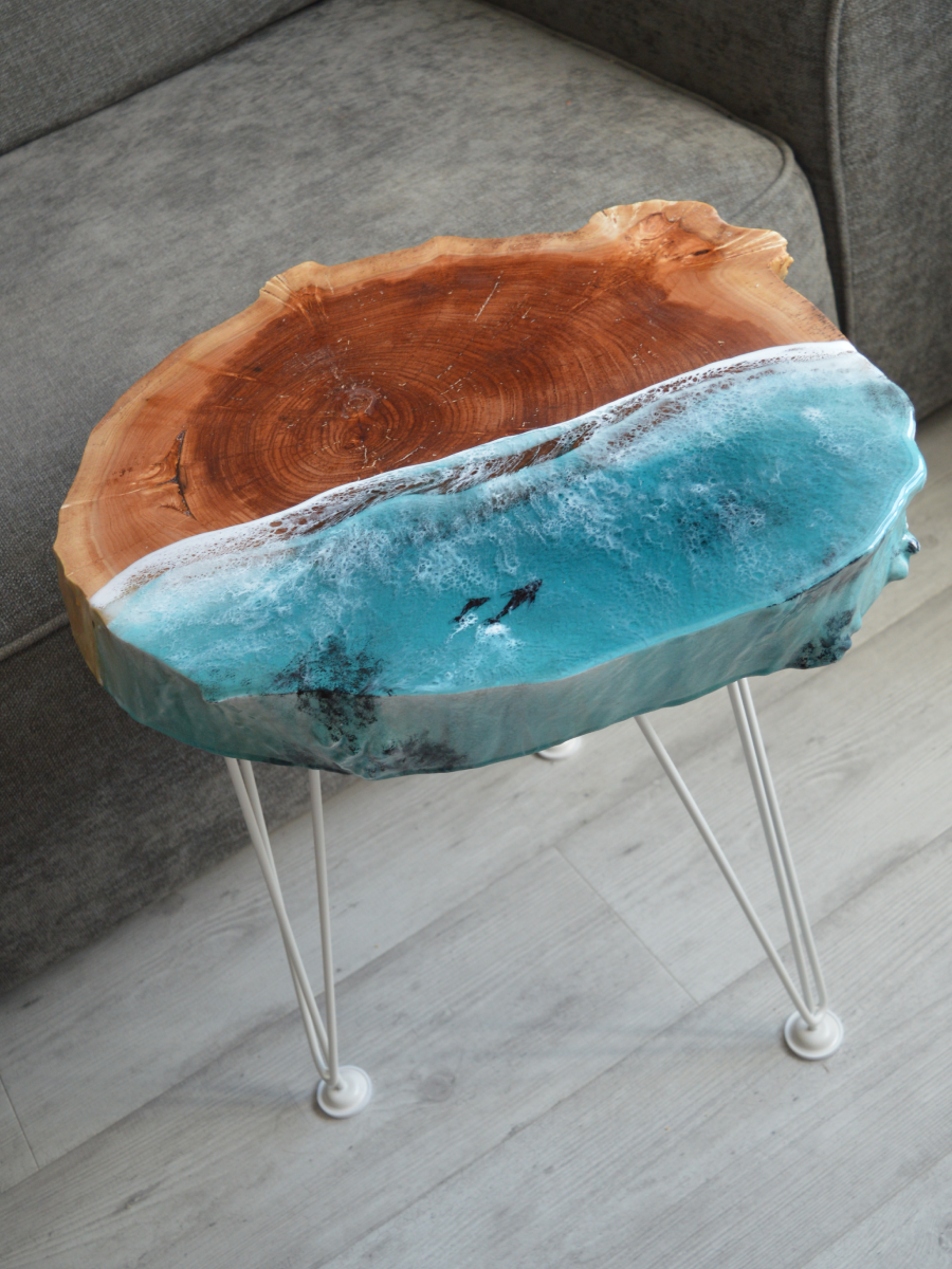 Приставной столик из смолы "летний бриз"